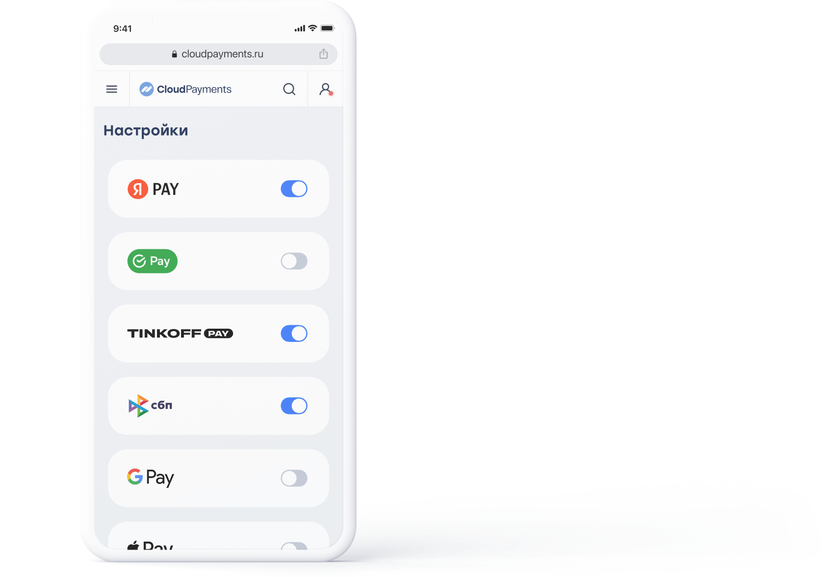Включите тумблеры с Pay-сервисами